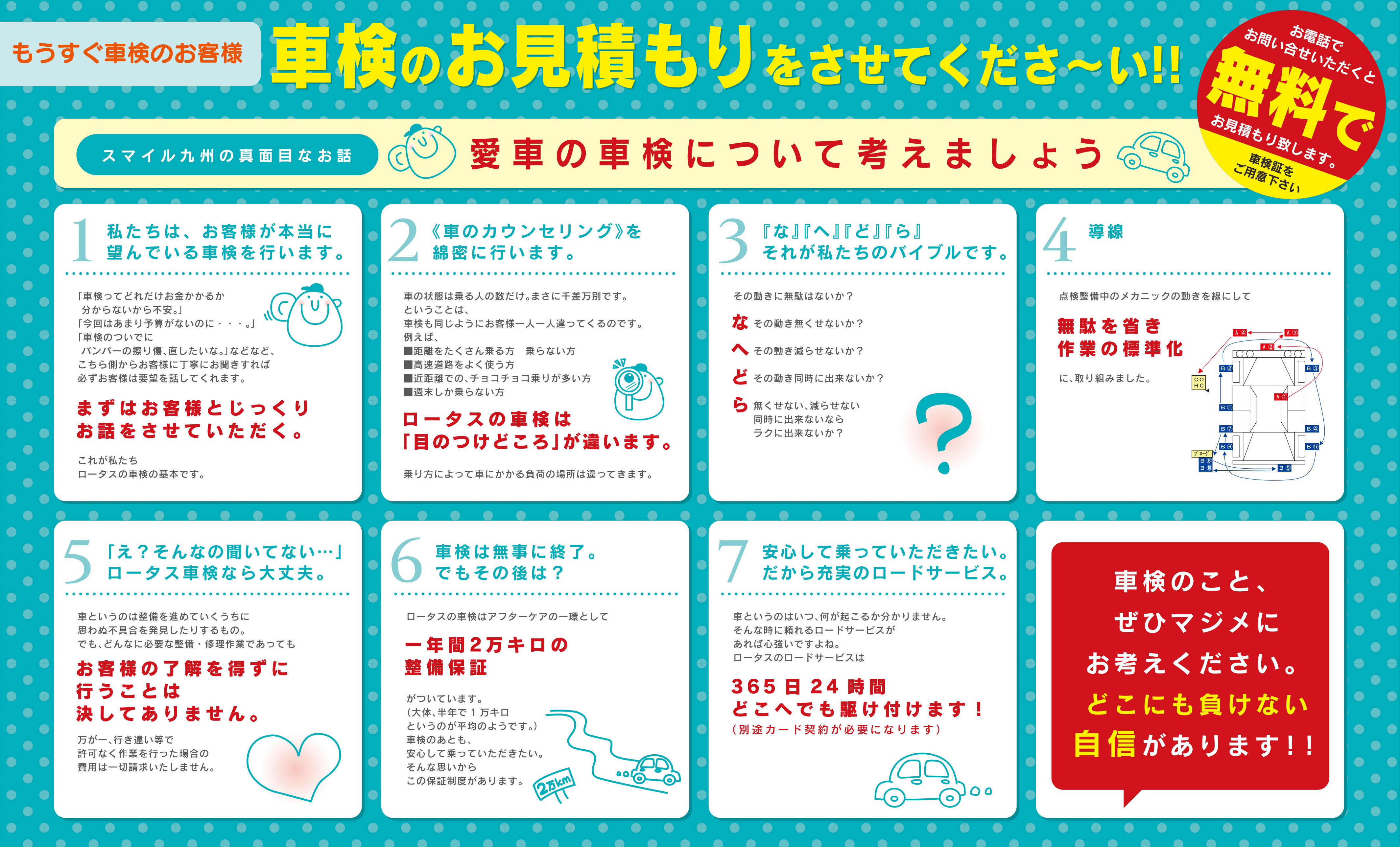 スマイル車検は、全国1,600以上の(※1)の全国優秀自動車販売・整備事業者で組織するロータスクラブ加盟店でつくる車検のプロショップです。 「信頼」「実績」「技術」に裏打ちされたプロとしての自信を持って、お客様に安全・安心の車検サービスをご提供いたします。